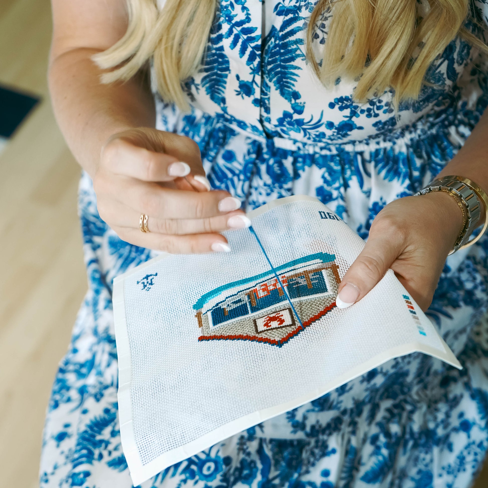 The Canvas is like your road map: it's a painted version of the original needlepoint design that you follow as you stitch your artwork. It doesn't come with any threads or materials — it's just your guide.